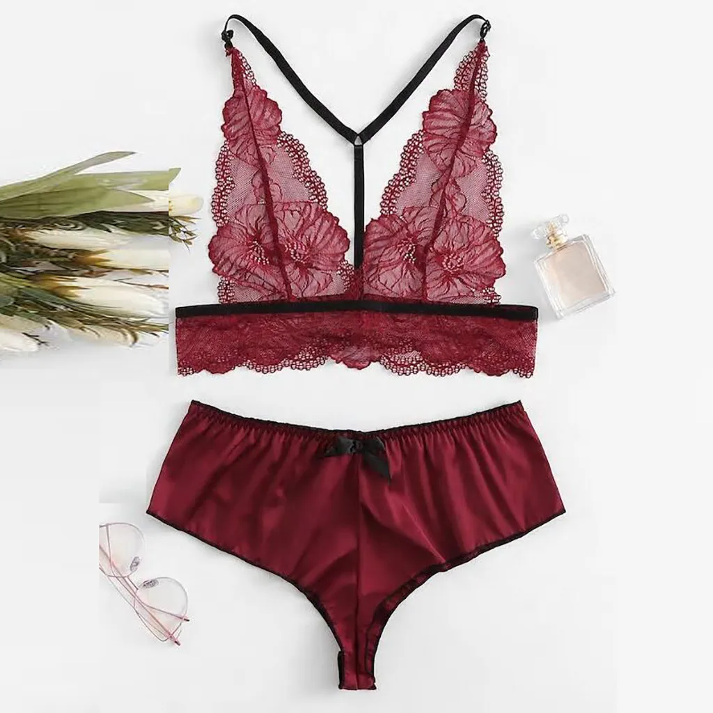 Новый Изысканный кружевной бюстгальтер красного цвета, комплект нижнего белья, пижама с вырезами, женский сексуальный ансамбль с низкой посадкой