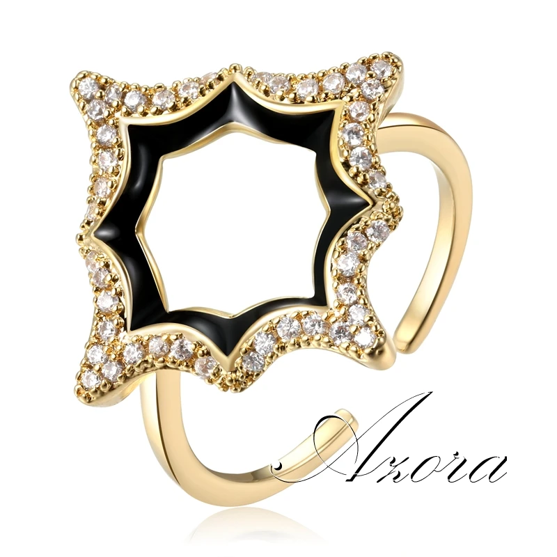 Женские кольца на палец AZORA, прозрачные, с кубическим цирконием, с геометрическим цветком, регулируемые, открытые, вечерние, для свиданий, Золотое ювелирное изделие, TR0236