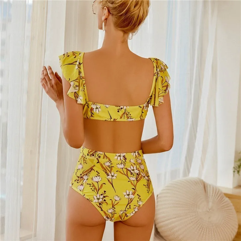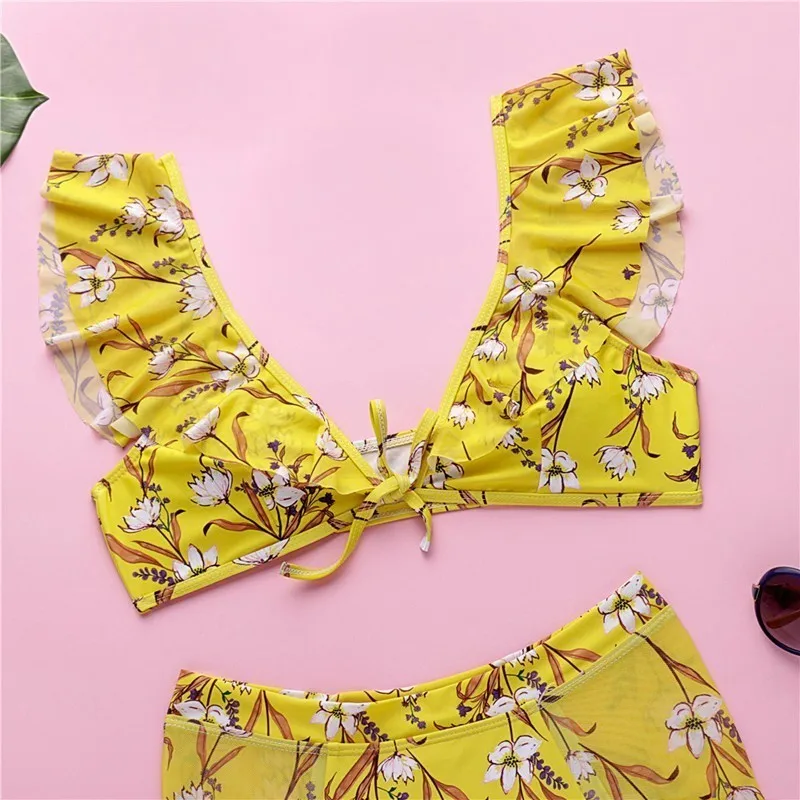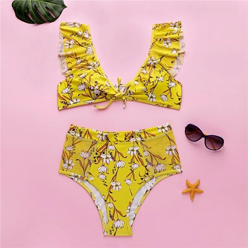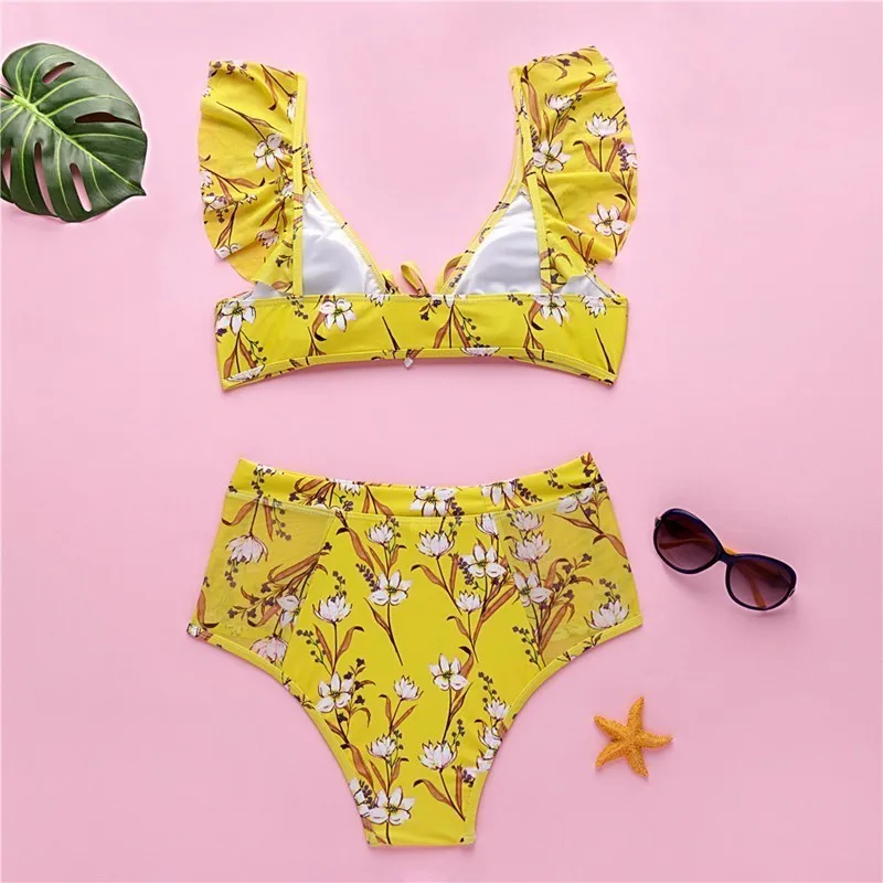 Купальник женский с оборками сбоку пуш-ап бикини Набор Высокая талия Мягкий купальник из двух частей женский цветочный купальник с принтом сексуальный бикини | ||||||||||||||||||||||||||||||||||||||||||||||||