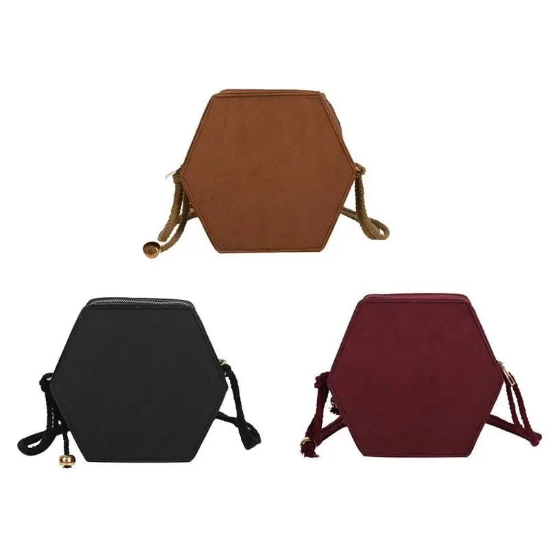 Vintage Women Solid Color Shoulder Bags Frosted Leather Hexagon Crossbody Bag Casual Accessories Features: Casual Accessories. Solid Color, Hexagon Pattern. Specification: Material: Frosted Leather Color: Brown, Black, Wine Red Size: 17*12*6.5cm/6.69*4.72*2.56in Shape: Hexagon Opening method: Zipper Application: Shoulder Bag, Crossbody Bag Note: 1. Due to the different monitor and light effect, the actual color of the item might be slightly different from the color showed on the pictures. Thank you! 2. Please allow 1-3cm measuring deviation due to manual measurement. 1 X Shoulder Bag