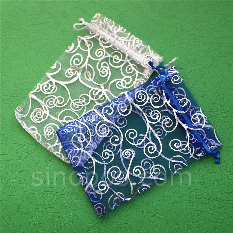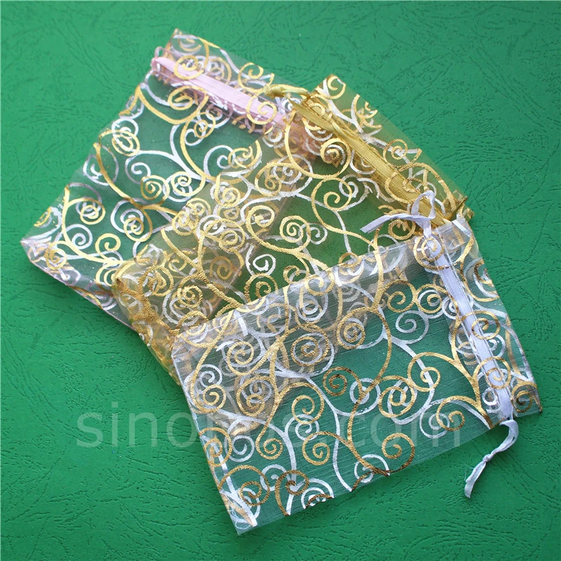 Рисунок «лоза» Сумка из органзы на шнурке, серебристо-золотистые спиралевидные завитки ткань нарисованная веревка упаковка Карманные Подарочные сумки ювелирные изделия конфеты