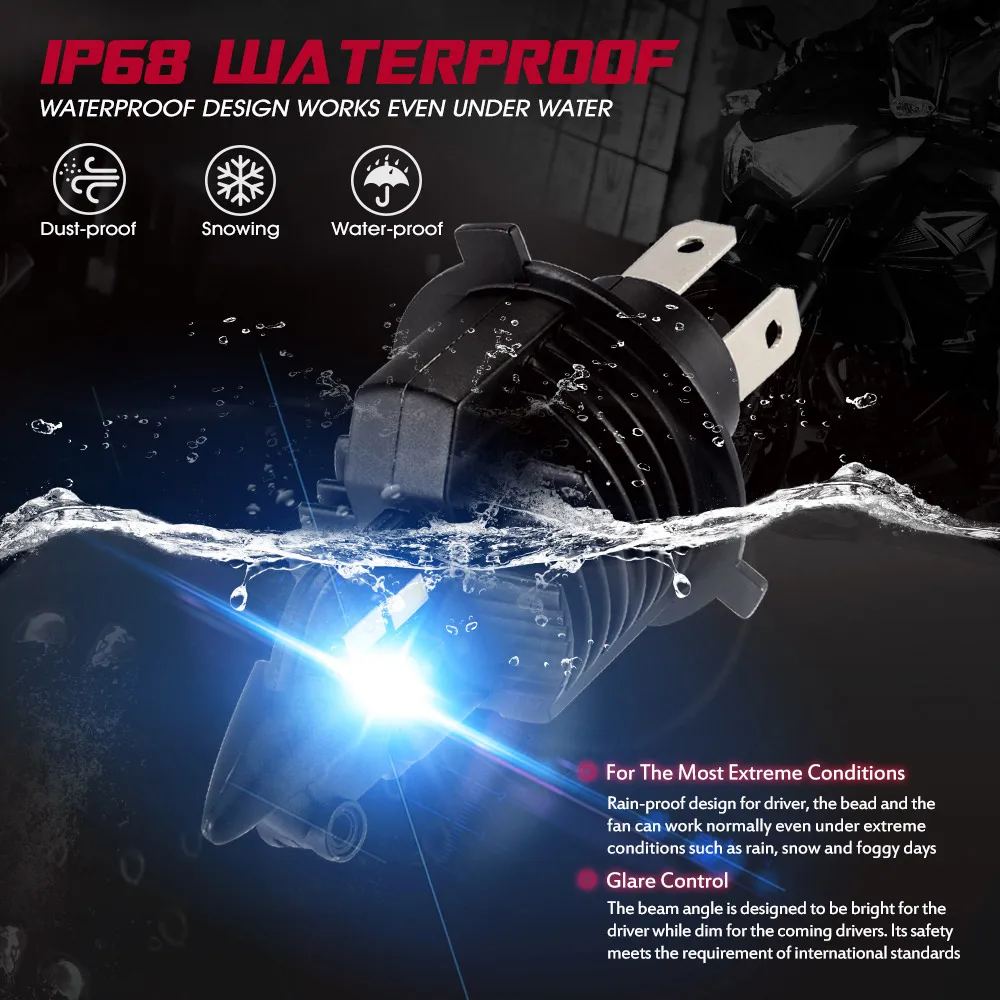 1 шт., мини-размер, H4, светодиодная фара для мотоцикла, 35 Вт, 6000LM, 6500K, белая, h4, светодиодная фара для мотоцикла