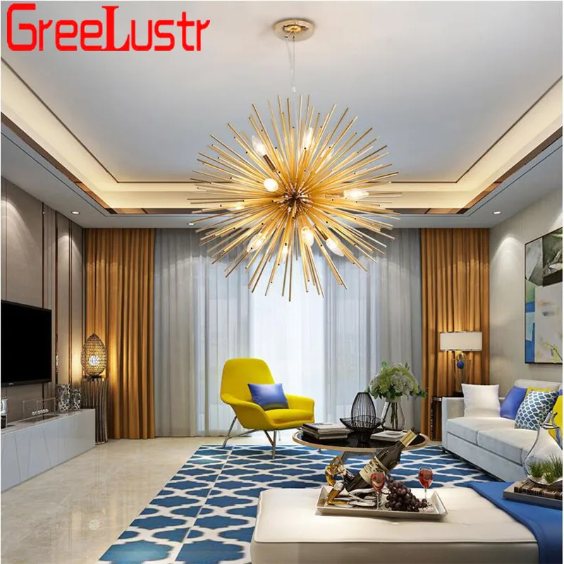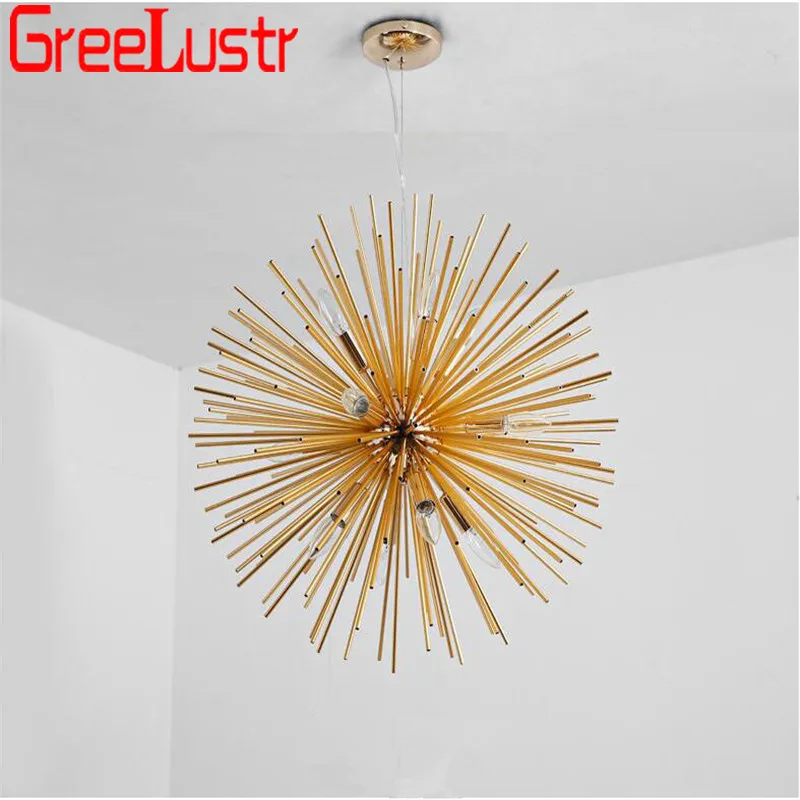 Светодиодный светильник в виде одуванчика скандинавского дизайна, Алюминиевый Золотой подвесной светильник E14, декоративная люстра для дома