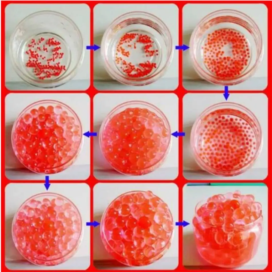 Инструкции по использованию: 1. Добавьте один в один галлон воды или 1 столовую ложку уровня в 2 кварта воды. (Для больших бусин Используйте дистиллированную воду). 2. Позвольте бусинам поглощать воду в течение 6-12 часов. 3. Сливайте лишнюю воду с ситечком или дуршлагом. 4. Залейте готовые бусины в вазы и миски.