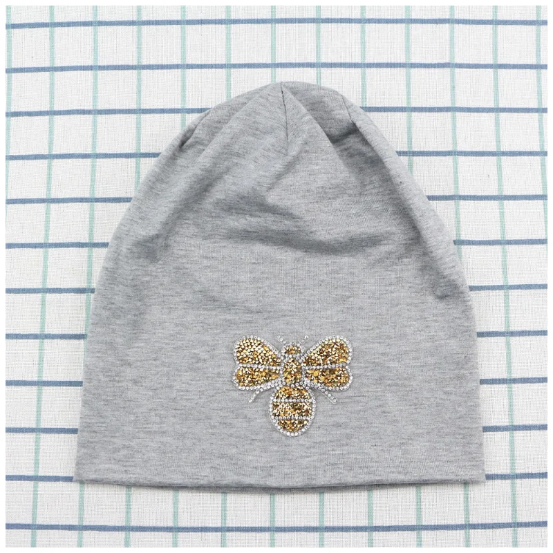 Женская однотонная шапка Sunlikeyou, мягкая теплая шапка из хлопка со стразами и Пчелой на весну и зиму