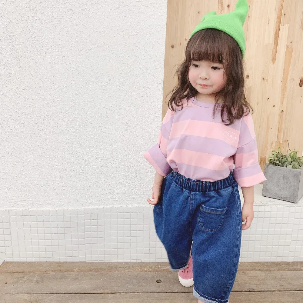2019 г. весенняя детская одежда 100% хлопок, рубашки с длинными рукавами для маленьких мальчиков и девочек блузка для девочек топы, футболки, полосатые повседневные рубашки