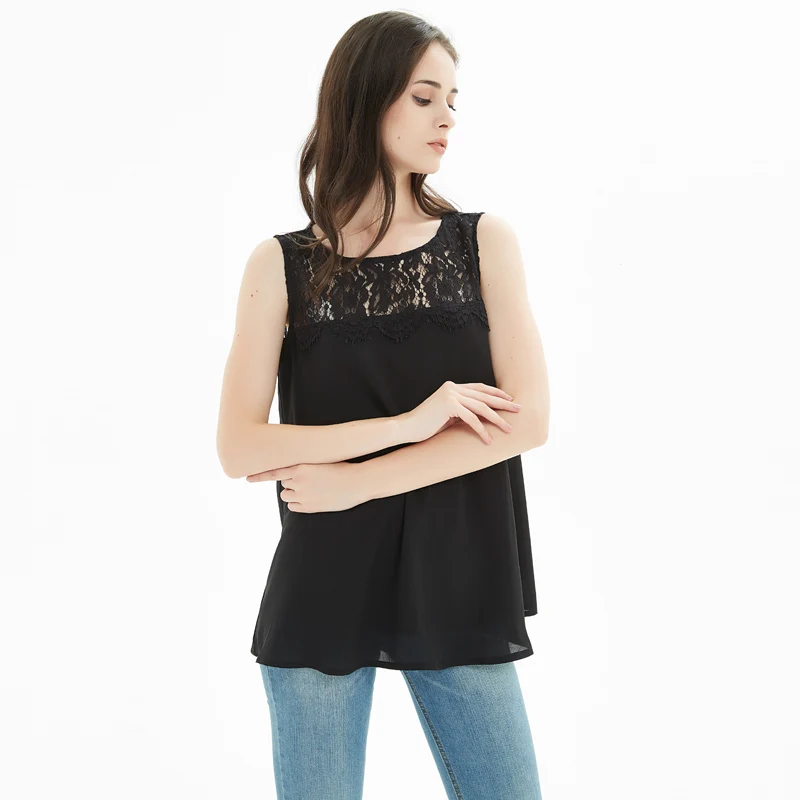 Этот топ без рукавов с кружевными деталями хорошо сочетается с различными стилями и может быть одет вверх или вниз.