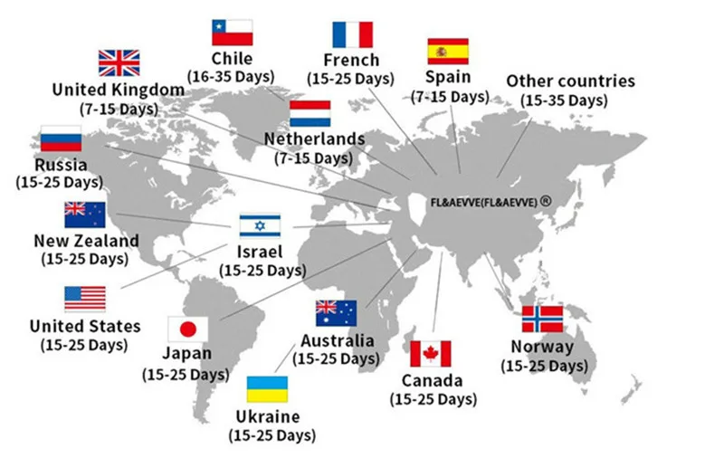 В Северную Америку, Европу, Азию и Австралию Доставка занимает всего 5-7 дней, В других странах это займет около 7-10 дней. |