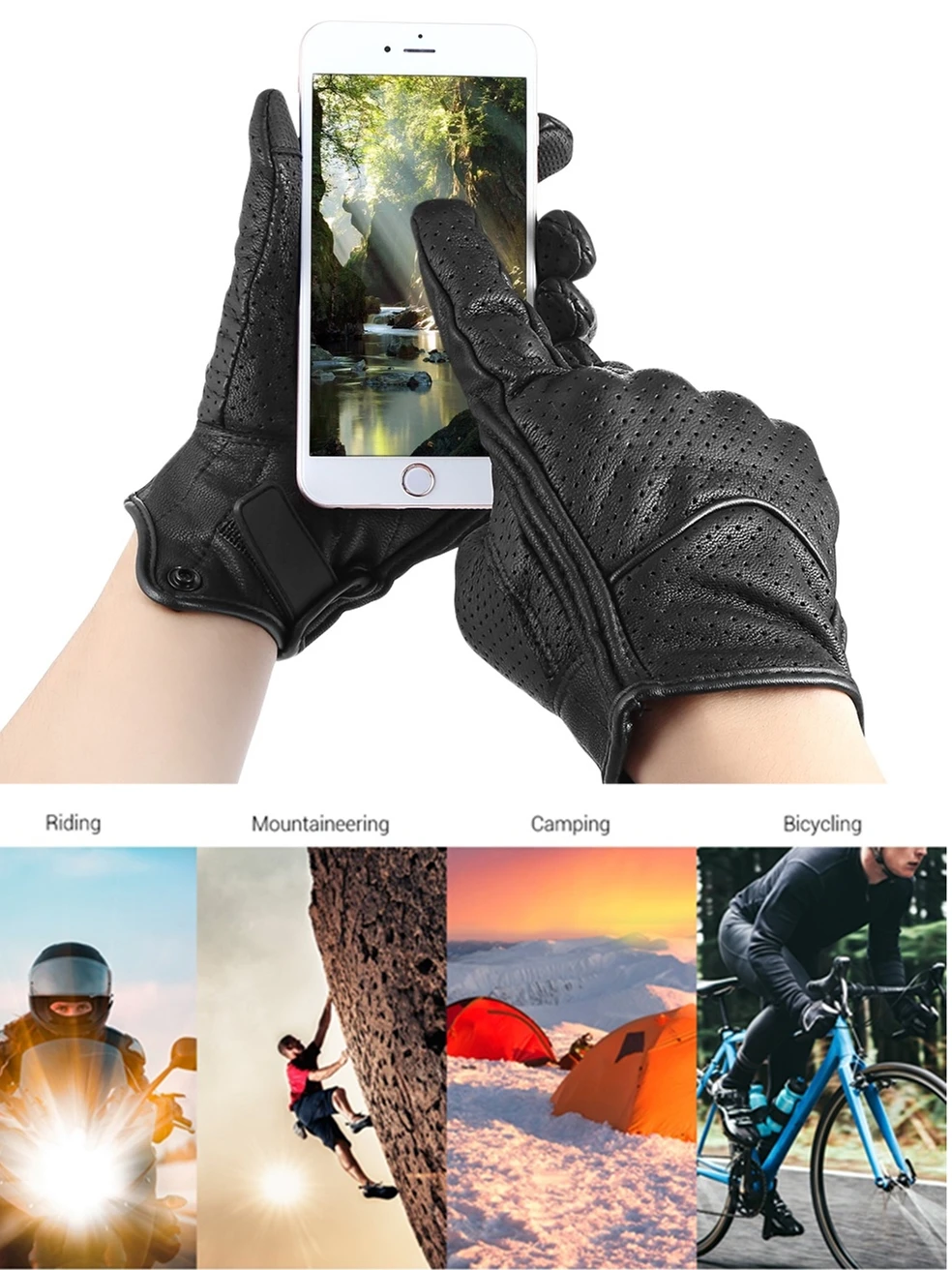 Основные функции: -Материал из натуральной кожи, очень мягкий и удобный для ношения, также гибкий и легкий, прочный в использовании -Функция сенсорного экрана на большом пальце и указательном пальце поможет вам использовать мобильный телефон и другие устройства, не снимая перчатки -Перфорированный/не перфорированный дизайн делает перчатки более дышащими/сохраняют тепло. -Жесткий пластмассовый костяк и поролоновая подкладка на пальце дают вашей руке больше защиты -Кнопка с пряжкой может блокировать перчатки влево и вправо, чтобы избежать потери, пока они не используются -Волшебные Ленты делают перчатки идеально подходящими для ваших рук -Идеально подходит для активного отдыха, например, езды на велосипеде, езды на мотоцикле, пеших прогулок, альпинизма, альпинизма и т. д. -Важное примечание: Что касается размера, в случае, если окружность вашей ладони составляет 24-25, а ширина ладони ближе к 12 см. Пожалуйста, выберите размер XXL, который соответствует нашему текущему размеру. Если ширина вашей ладони больше 13 см, я советую вам не покупать. Пожалуйста, оцените ширину вашей ладони перед покупкой. Спасибо за понимание. Технические характеристики: -Материал: кожа -Тип перчаток: перчатки с открытыми пальцами -Пол: мужчины/женщины -Сезон: весна, лето, осень, зима Половая принадлежность: "унисекс" Вес упаковки: 0,175 кг Комплектация: 1 пара перчаток