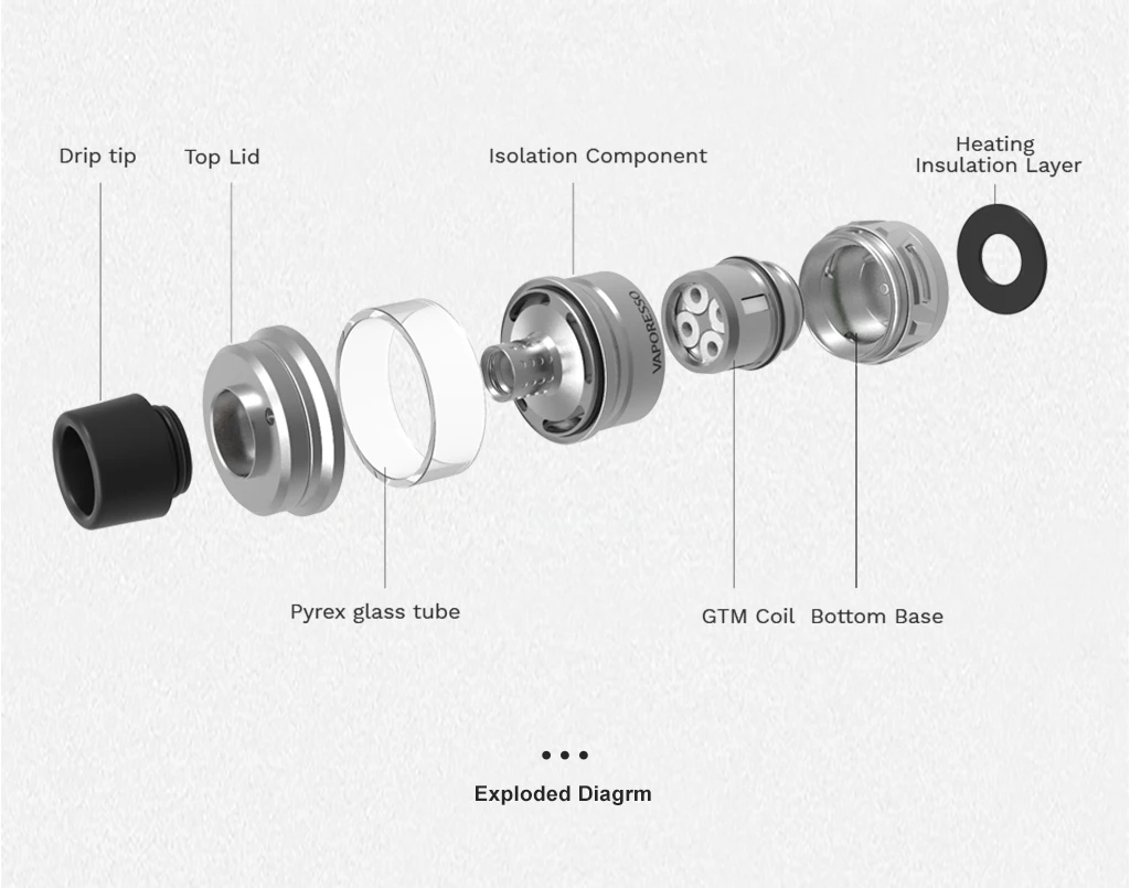 -Диаметр основания 24 мм -Диаметр 28 мм в самой широкой точке -Емкость сока 7 мл -Улучшенная конструкция из нержавеющей стали -Армирование стекла пирекс -0.2ohm GTM 2 ядра -0,15 Ом GTM 8-ядерный -Совместимость с ядрами GT -Управление воздушным потоком в форме -Капельный наконечник Delrin Widebore -Слайд-Н-заполняющий дизайн -Подключение 510 -Цвет: нержавеющая, черная, синяя, радужная