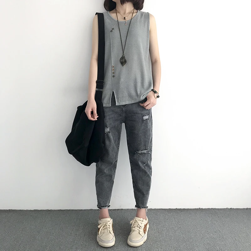 Women Sleeveless Ramie T Shirt 2019 Summer New Strap Knitted Vest Female Korean Fashion Women Clothing Loose Casual Basic Tops
