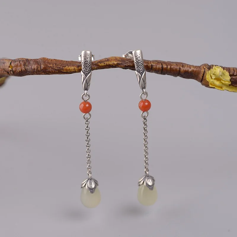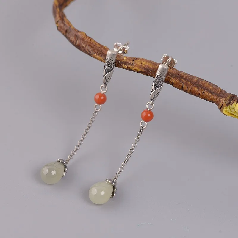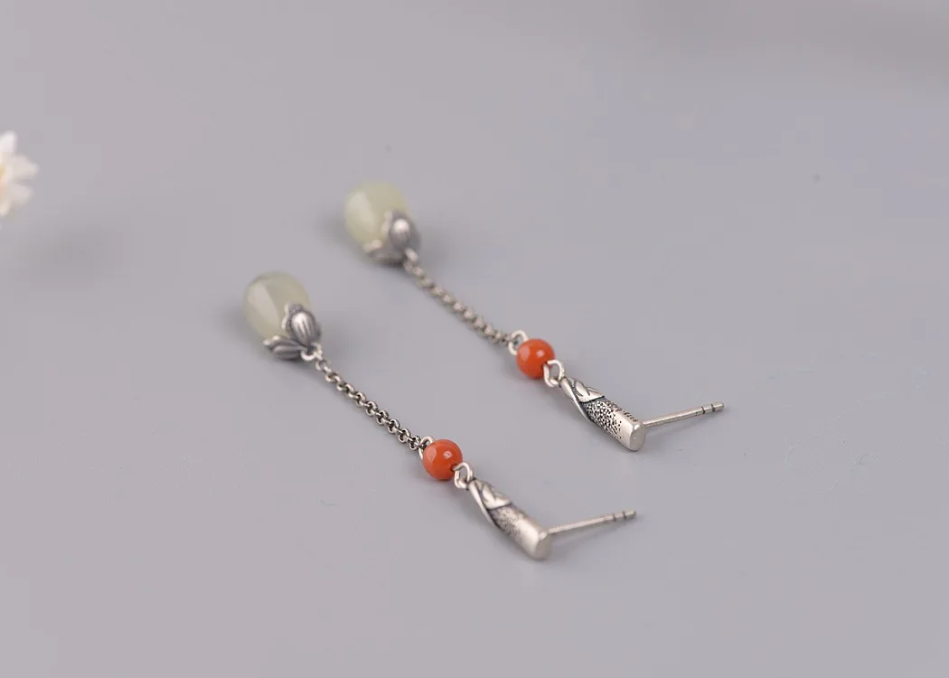 Материал: Стерлинговое Серебро s925 Длина: около 56 мм Инкрустация: Hetian jade 7 мм Вес; Около 4,2 г