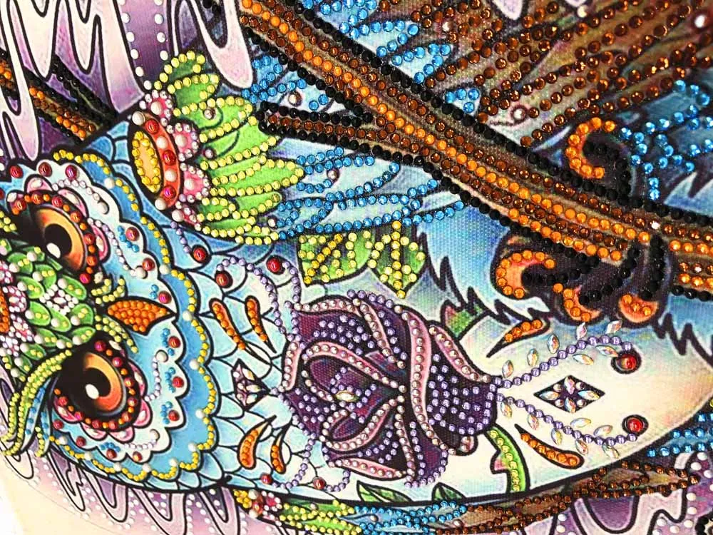 В комплект входит: 1 предварительно напечатанный холст, 1 набор разноцветных бусин со стразами, 1 лоток, 1 липкая ручка, 1 Алмазный гель;