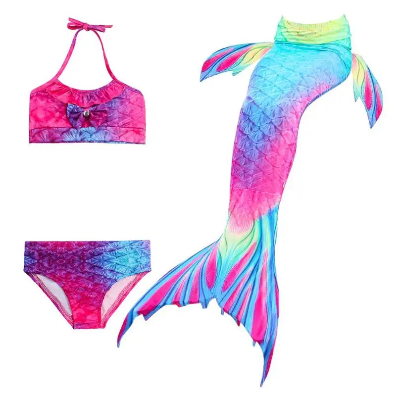 Купальник-бикини для девочек с градиентными цветами, рыбьи хвосты, детский пляжный карнавальный костюм с плавниками