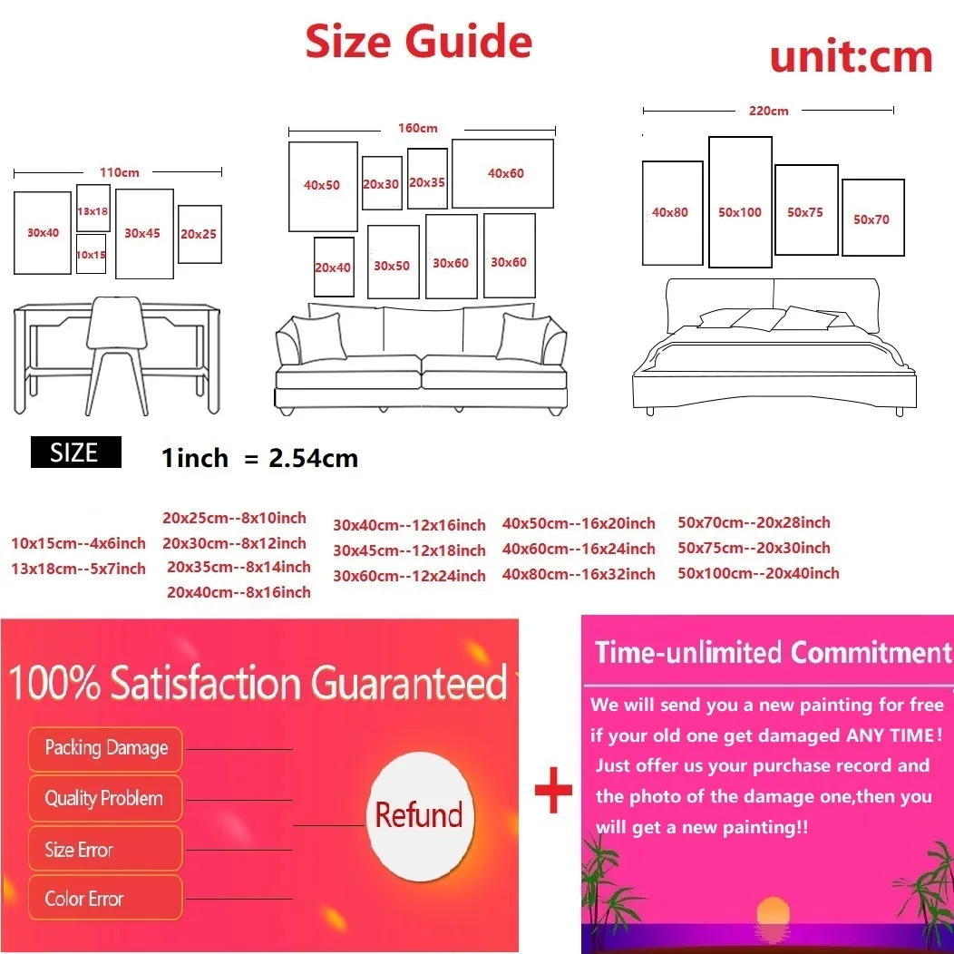Примечание: Вы можете получить одну новую замену Картины бесплатно, если есть какие-либо повреждения картины, купленной у нас в любое время, после того, как предложим запись покупки и фотографию картины повреждения.