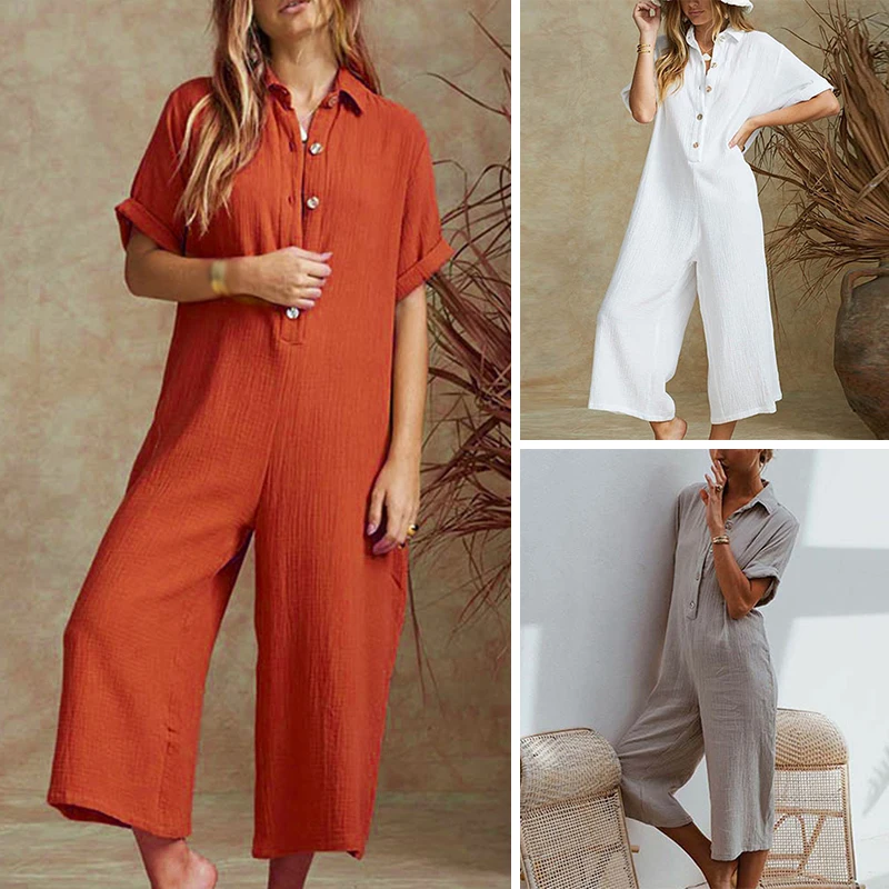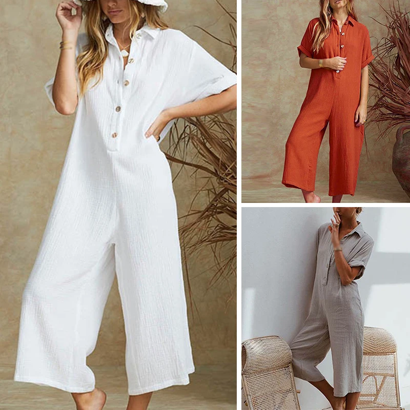* Описание товара: Женская ЛедиЛетние свободные штаны-шаровары Повседневные длинные брюки на пуговицахКомбинезон