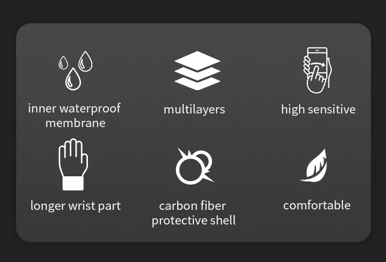 -Защитный чехол из углеродного волокна Защитите ваши руки Анти-скольжение-TPR pad Более хорошая защита для вашей ладони -Защитная накладка Прочная защитная накладка на палец сбоку Кулака pad Костяшки пальцев защитная накладка -Дизайн сенсорного экрана с указательным пальцем Кончик пальца чувствительная проводящая ткань супер волокна -Водонепроницаемый Внутренний водонепроницаемый карман