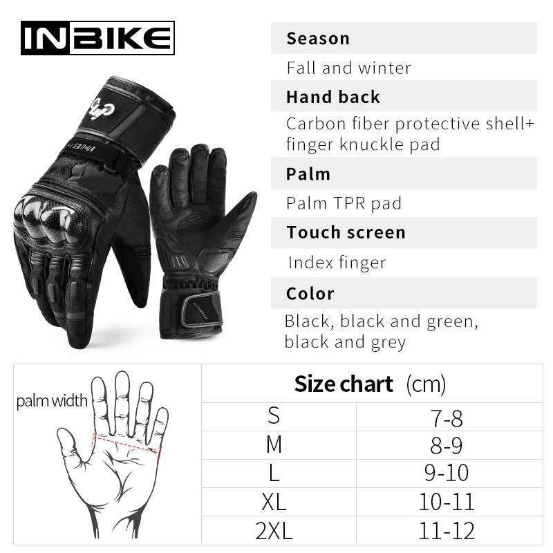 Название продукта: перчатки для мотоцикла inbike Материал ладони: супер волокно Материал задней части: искусственная кожа + ткань в клетку Сенсорный экран: указательный палец Размер: S, M, L, XL, 2XL Цвет: черный, черный и серый, черный и зеленый