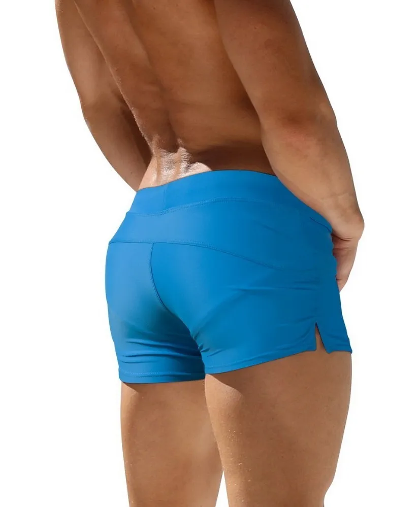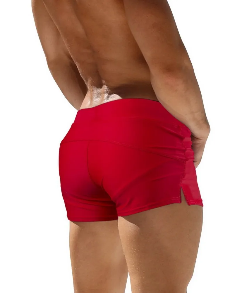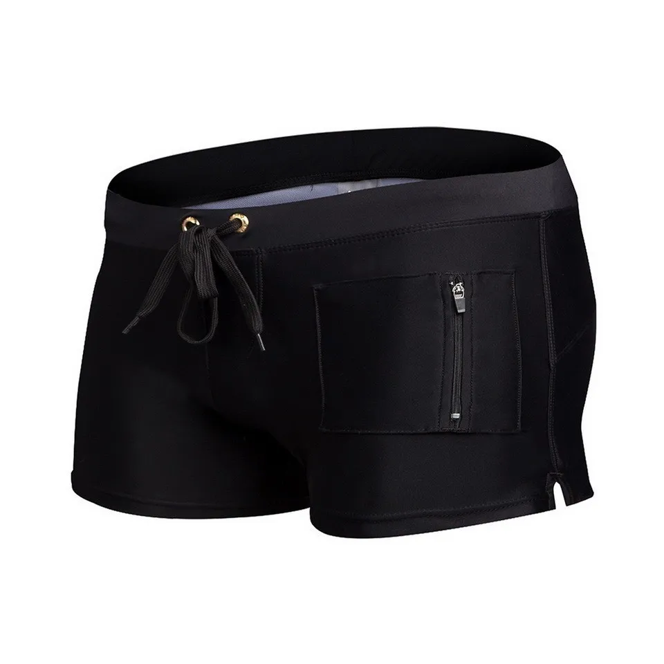 Мужские плавки с боковыми карманами и завязками, однотонные черные, красные, синие плавки, дышащие плавки, пляжная одежда, эластичные мужские плавки