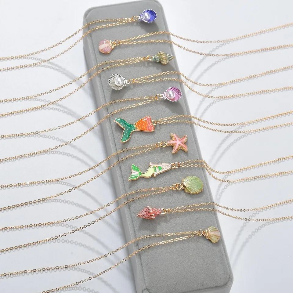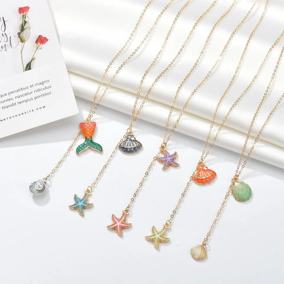 Handmade Summer Star Blue Shell Pendant Necklace Summer Sea Elements Pendants&Necklace Unique Trendy Jewelry Beautiful Necklace