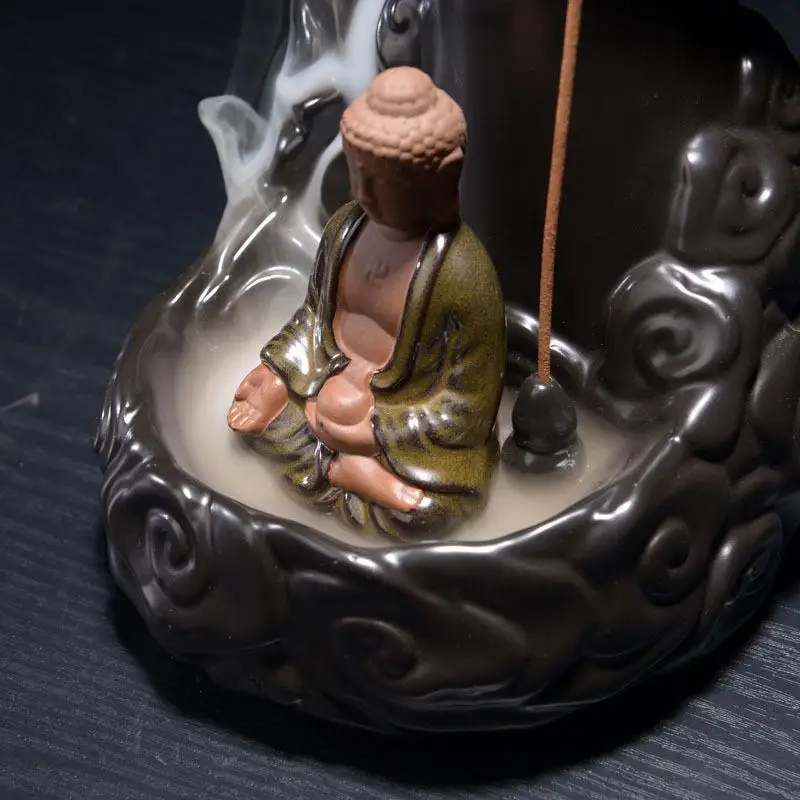 Будда керамическая курильница цветок лотоса дым водопад держатель благовоний ароматерапия Будда ручная курильница декоративный Будда