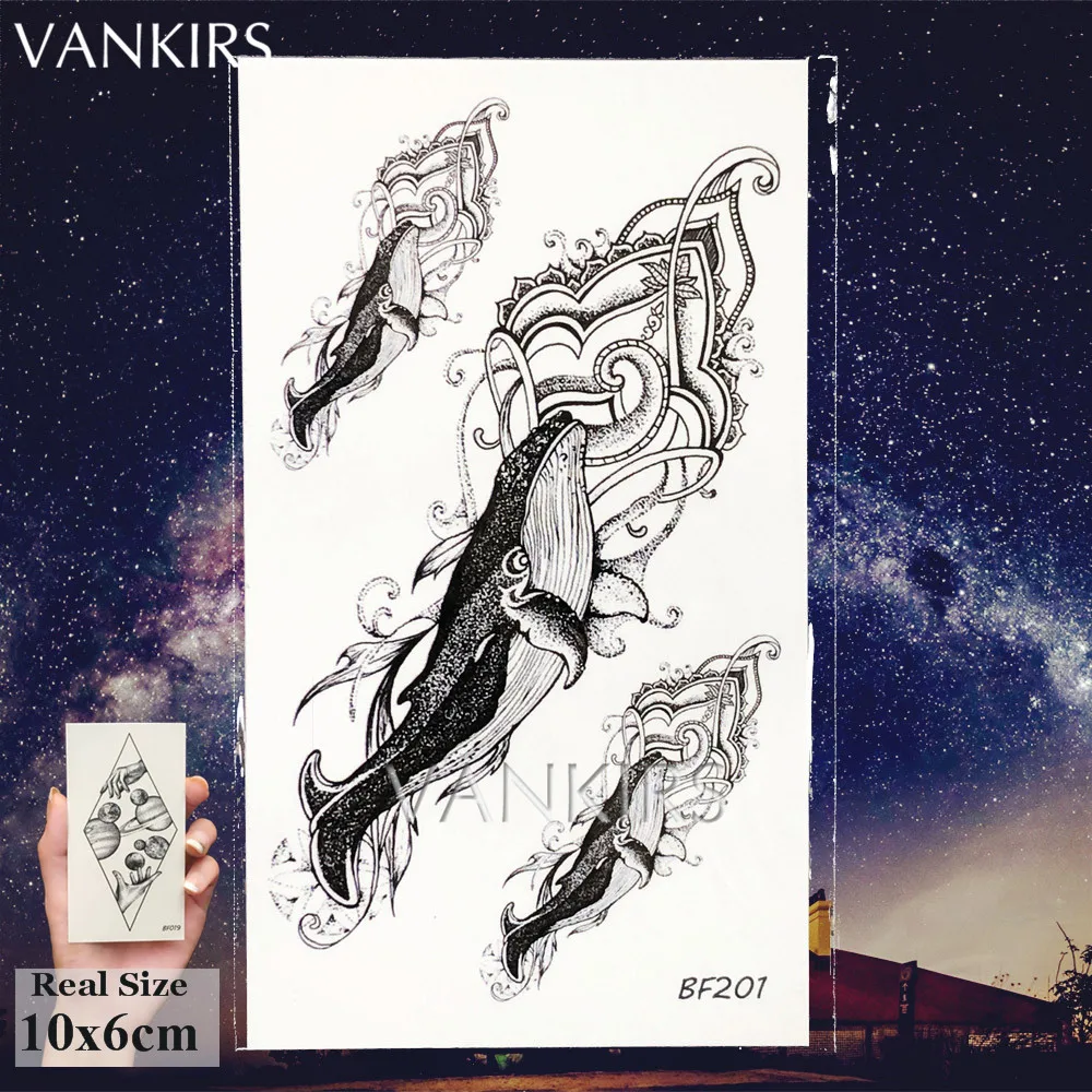 Милый 3D черный кит дельфин водный транфер поддельные наручные татуировки наклейки для мальчиков и девочек Временные татуировки для океана на заказ