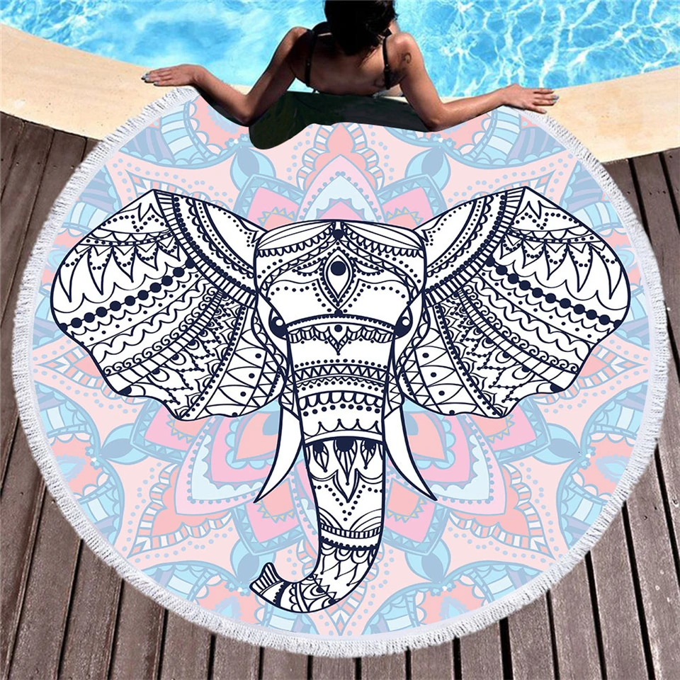 GRIDILANGO Мандала Индийский Слон микрофибра круглый пляжное полотенце s с кисточкой для взрослых детей пляжное банное полотенце Коврик для йоги 150x150cm