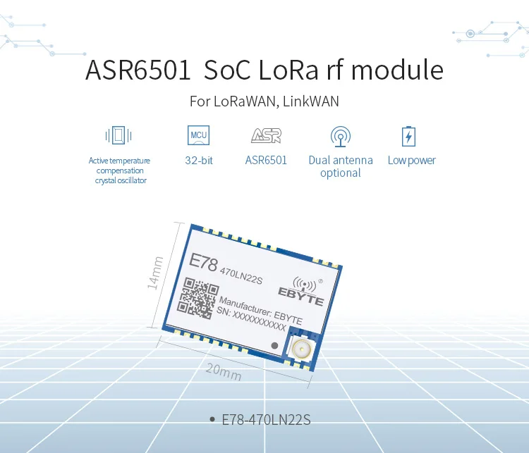 Беспроводной трансивер LoRaWAN SPI ASR6501 SoC LoRa 22dBmE78-470LN22S