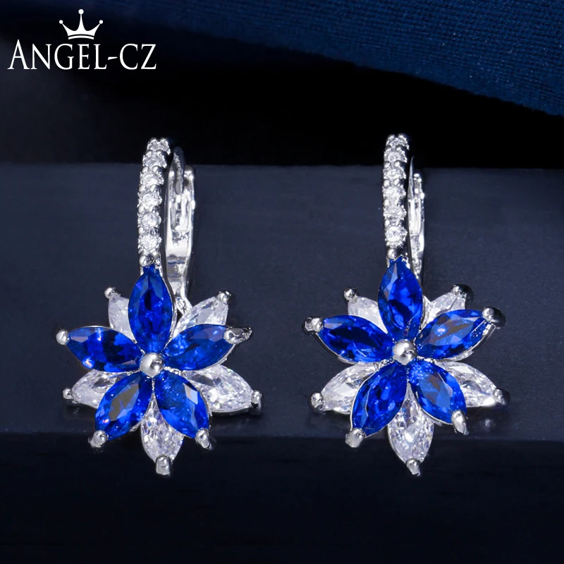 Женские маленькие серьги-гвоздики ANGELCZ, с голубым кубическим цирконием, в Корейском стиле, вечерние аксессуары, AE246