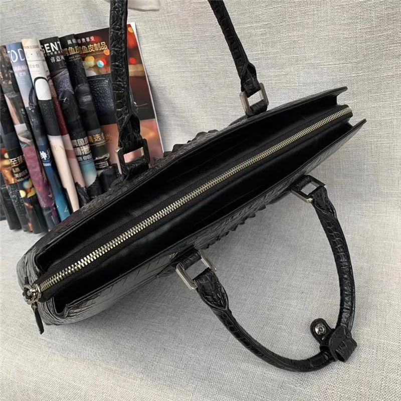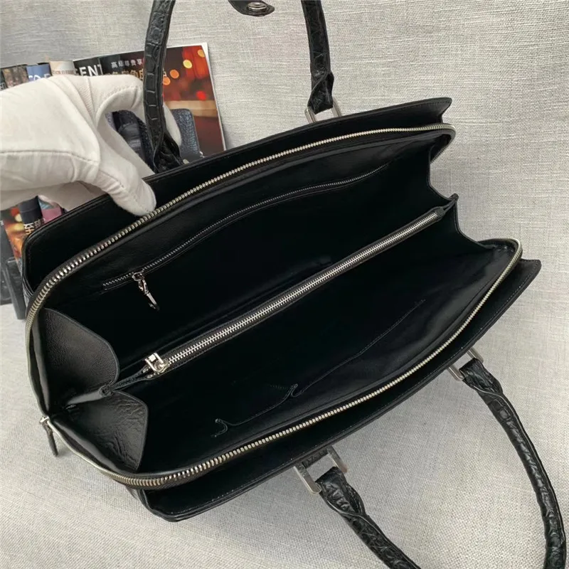 Подлинная крокодиловая кожа мужской большой портфель для ноутбука из натуральной кожи аллигатора на молнии мужская рабочая сумка с верхней ручкой