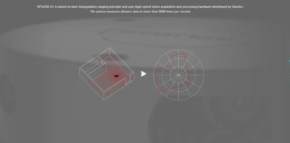 RPLIDAR A1 базируется на режиме лазерной триангуляции и использует высокоскоростное оборудование для сбора и обработки зрения, разработанное Slamtec. Система измеряет данные о расстоянии более 8000 раз в секунду.