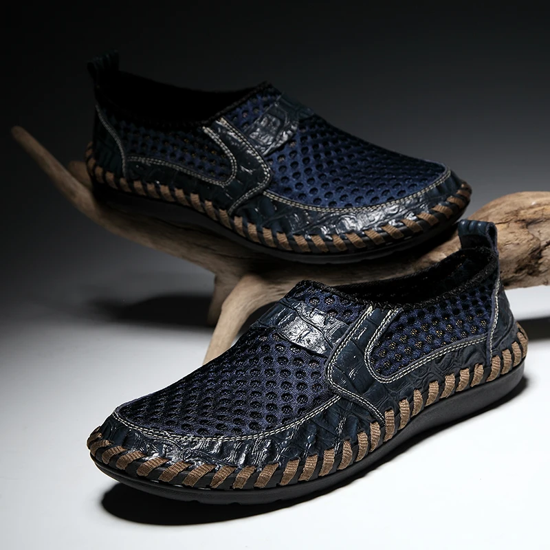 Summer Mesh Men Casual Shoes Hollow Soft Slip-on Shoe Lightweight Comfortable Breathable Loafers Male Big Size Patchwork Sandals