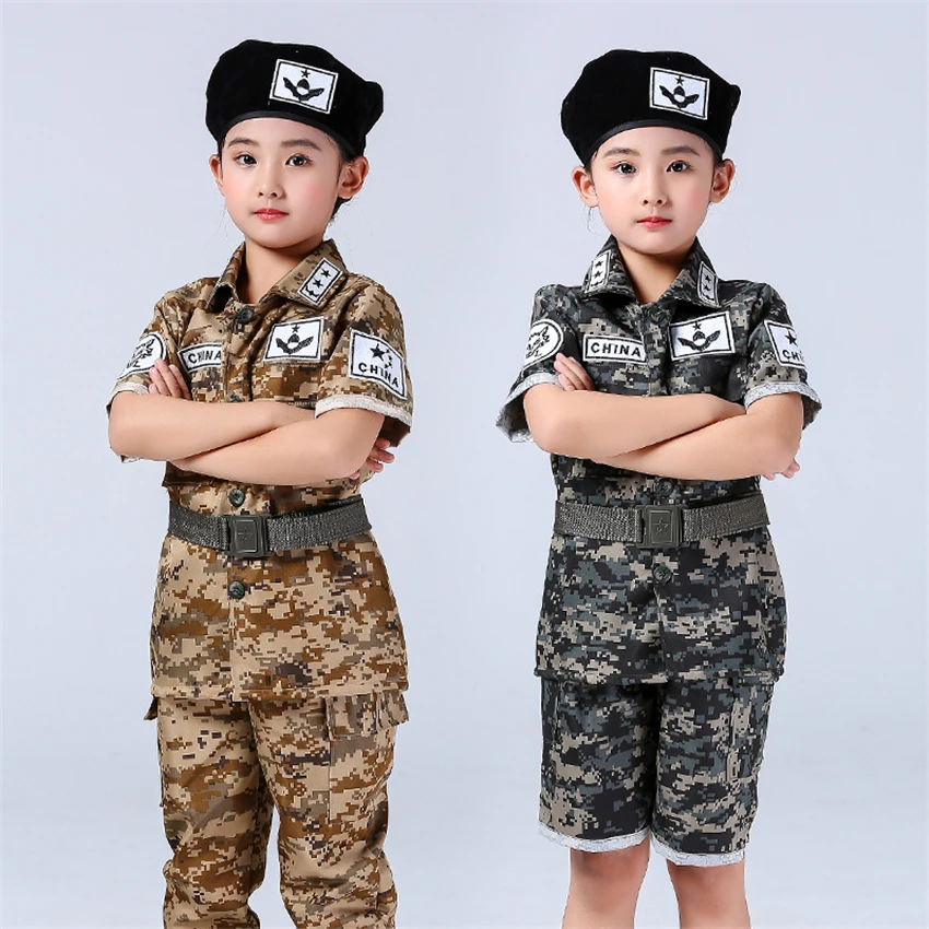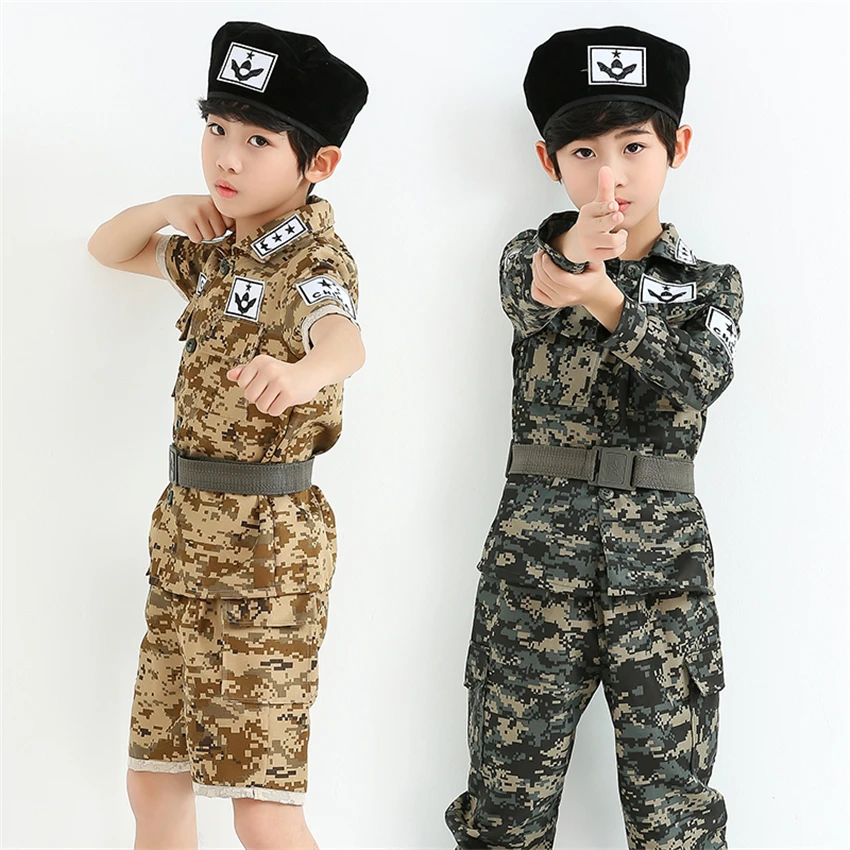 Военная форма для мальчиков, короткий и длинный Камуфляжный армейский костюм сон Джун Ки, костюмы для костюмированной вечеринки, тактические тренировочные комплекты из 4 предметов для детей Советы: кнопка не вырезается, она требует, чтобы вы порезали себя, пожалуйста, поймите
