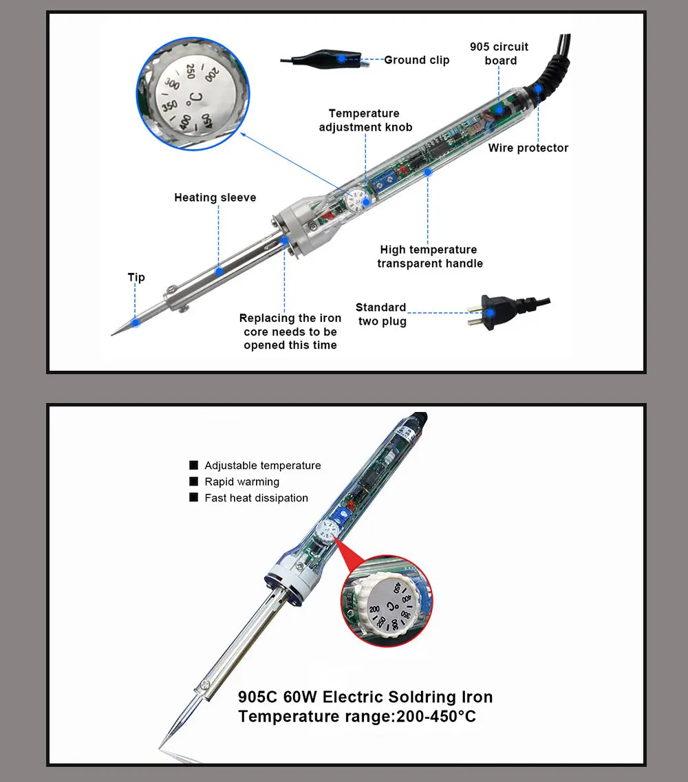 1, использование отвертки для удаления оригинального наконечника, установка медной головки, (обратите внимание, чтобы убедиться, что Медная головка в самое глубокое); 2, регулировка температуры при 200 градусов Цельсия, а затем подключите питание (в первый раз вы будете использовать белый дым, что нормально, в будущем не появится); 3, красный свет загорится, подождите некоторое время, он выключится, от имени это состояние постоянной температуры; 4, еще раз Настройте на нужную вам температуру, индикатор будет гореть снова, после того, как он снова выключится, температура равна температуре, которую вы настраиваете.
