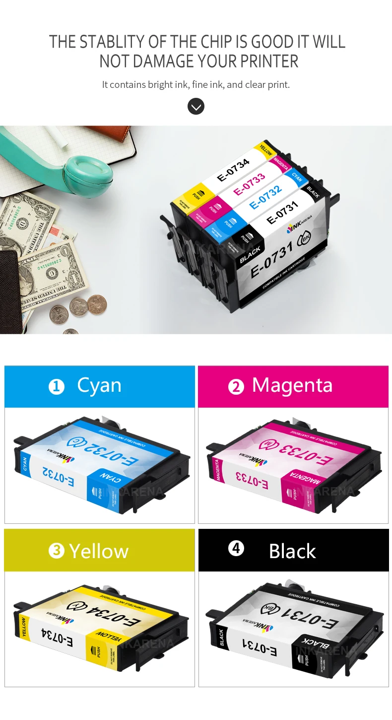 3 шт. X для Epson T0734 T0734N чернильный картридж желтого цвета, полный с чернилами и чипом