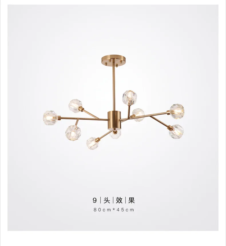 Product Description: Materials: Metal+Glass Finish Color: Glod Production Dimension: Diameter 80cm*H45cm 9 heads, Diameter 90cm*H45cm 12 heads Diameter 100cm*H45cm 15 heads Diameter 120cm*H45cm 18 heads Type of Bulb: G4 LED Bulb Number of Bulb:9 / 12/ 15/18 Bulb(s) Included Package include: 1PC * Pendant Light