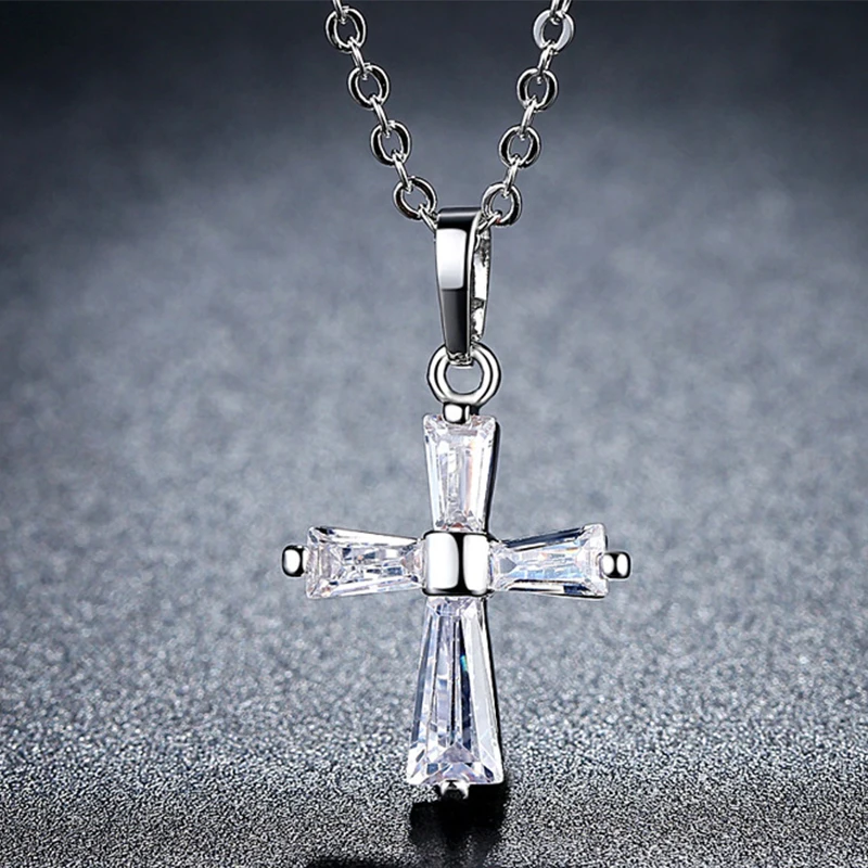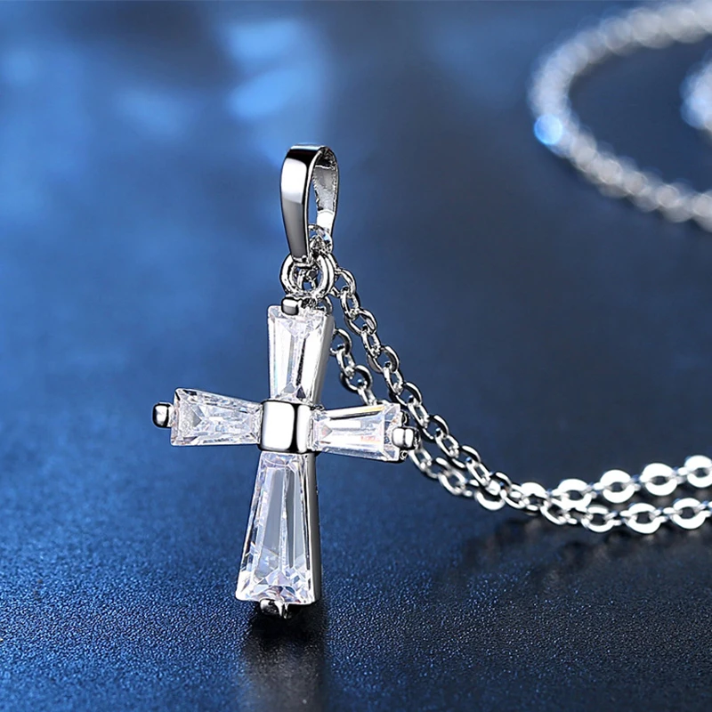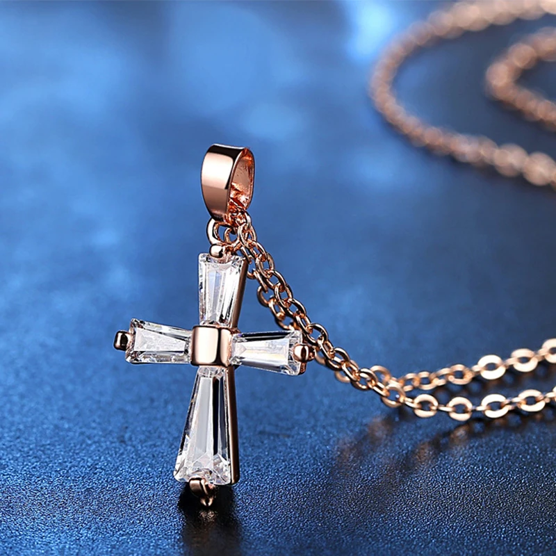 Роскошное розовое золото цвет крест кулон ожерелья для женщин Кристалл Кулон кубического циркония Длинное Ожерелье Bijoux ювелирные изделия оптом