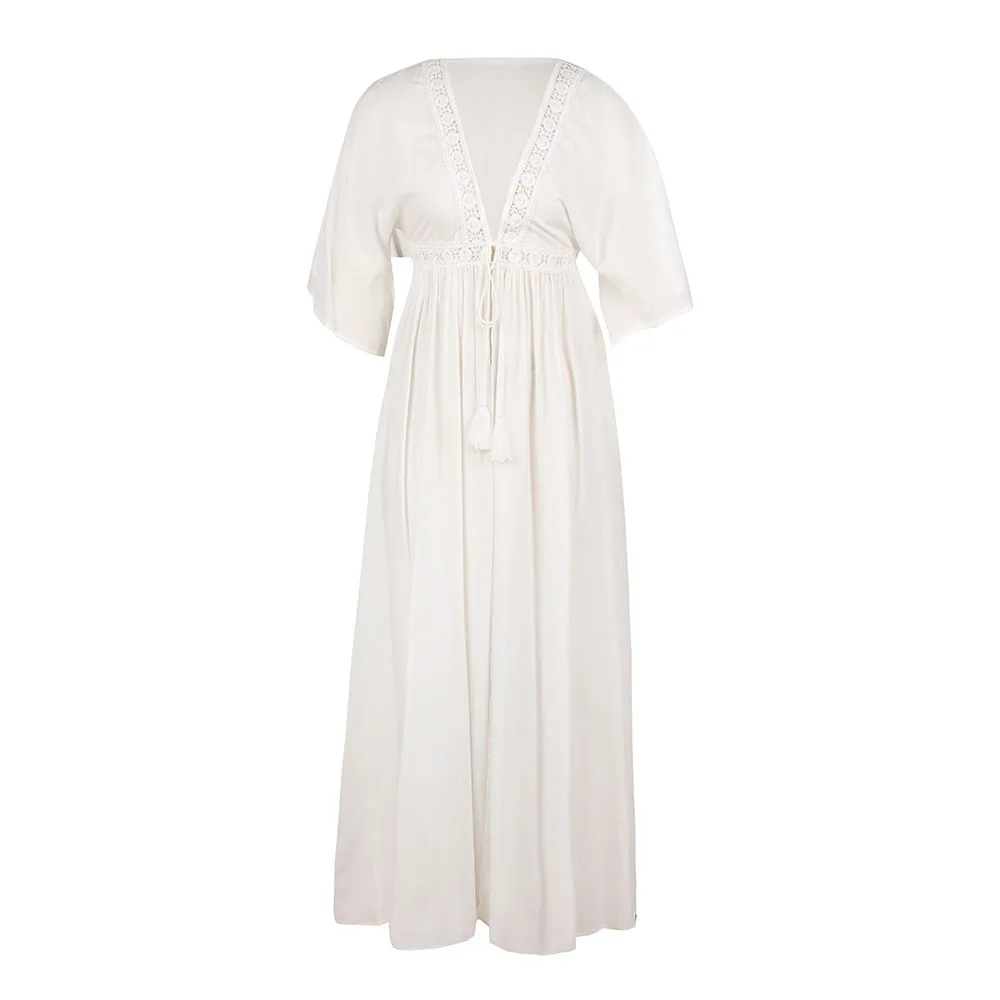 Летняя белая длинная блузка в стиле бохо, сексуальная Прозрачная женская повседневная Пляжная накидка, плиссированное кимоно, кардиган, Солнцезащитный Топ