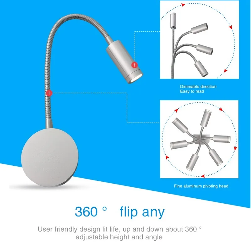 Светодиодный алюминиевый светодиодный светильник для чтения с гусиной шеей-популярный выбор, как светильник для кровати. Подходит для широкого спектра применений, включая спальню, освещение для дома.