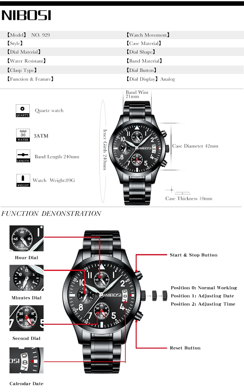 NIBOSI часы хронограф мужские часы топ известный бренд роскошные часы мужские часы военные армейские военные часы мужские водонепроницаемые