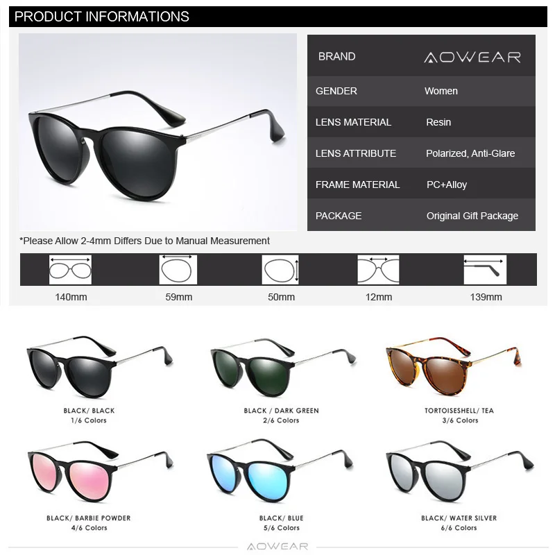 Женские солнцезащитные очки AOWEAR, поляризационные солнцезащитные очки в винтажном стиле, круглые очки для вождения, Gafas De Sol Mujer