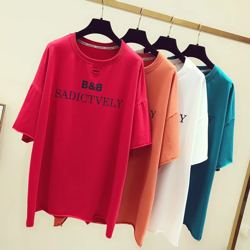 Женская футболка с коротким рукавом, вышитая буквами, новая летняя свободная футболка с манжетами, женская футболка