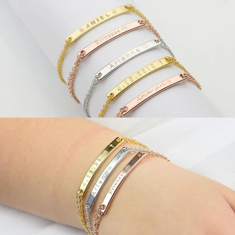 Персонализированные Гравированные имя ребенка браслет на заказ буквы ID бар дети браслеты ювелирные изделия для семьи малыш ребенок душ подарок