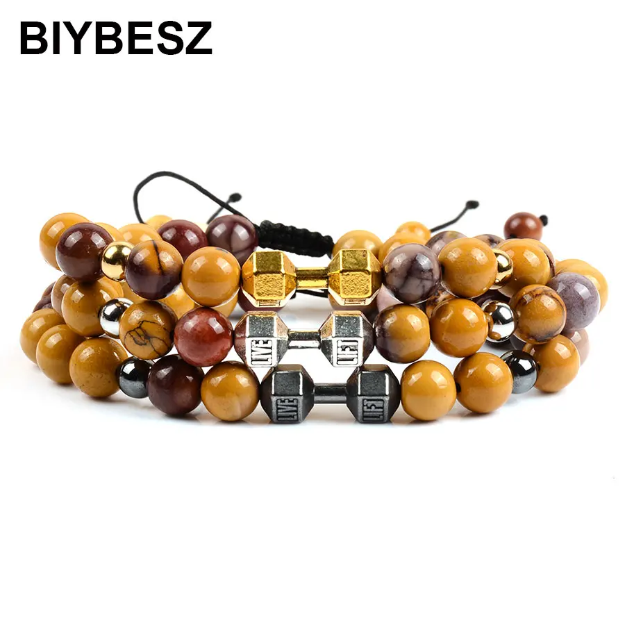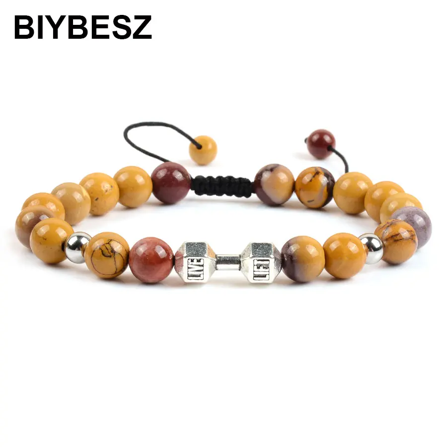 Мужской браслет из натурального камня Mookaite, браслеты для фитнеса и гантели, очаровательные ювелирные изделия для женщин, аксессуары, подарки ручной работы