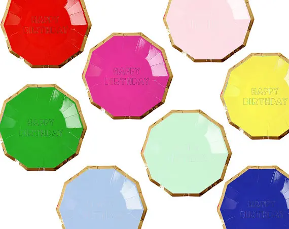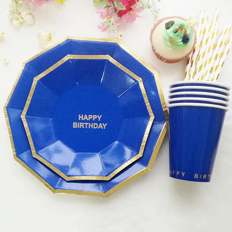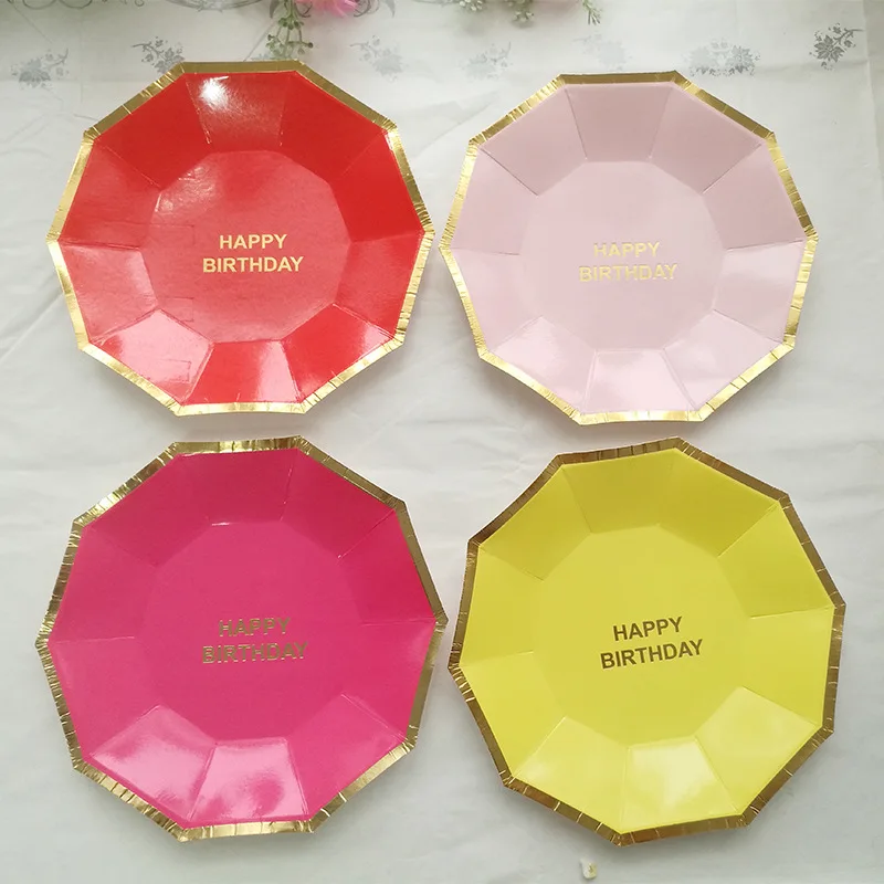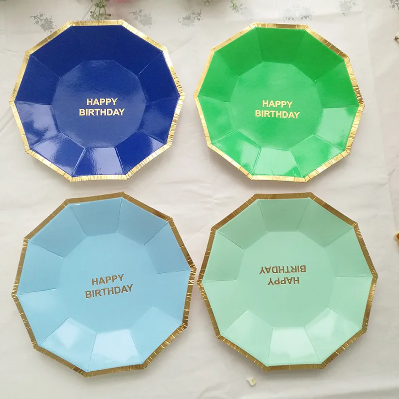 40 шт. Мятная и Золотая фольга с днем рождения бумаги пластина ярко-розовый красный желтый синий розовый темно-синий шестиугольник принадлежности для дня рождения