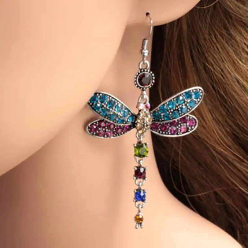 Женские серьги в форме стрекозы Boho, свадебные серьги с инкрустированным разноцветным цирконием, 2019