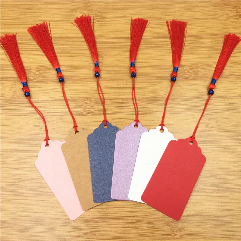 Material: Paper cardboard Size:8x4cm 1Lot=300Pcs+300Tassel Strings