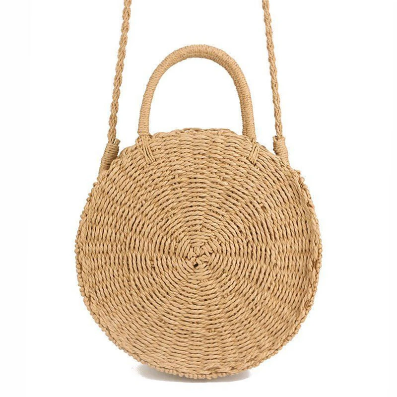Женская плетеная Сумка из ротанга, круглая соломенная сумка из бамбука ручной работы, пляжная сумка, 2019