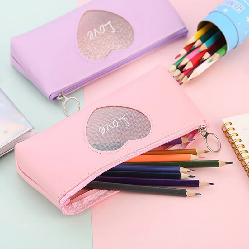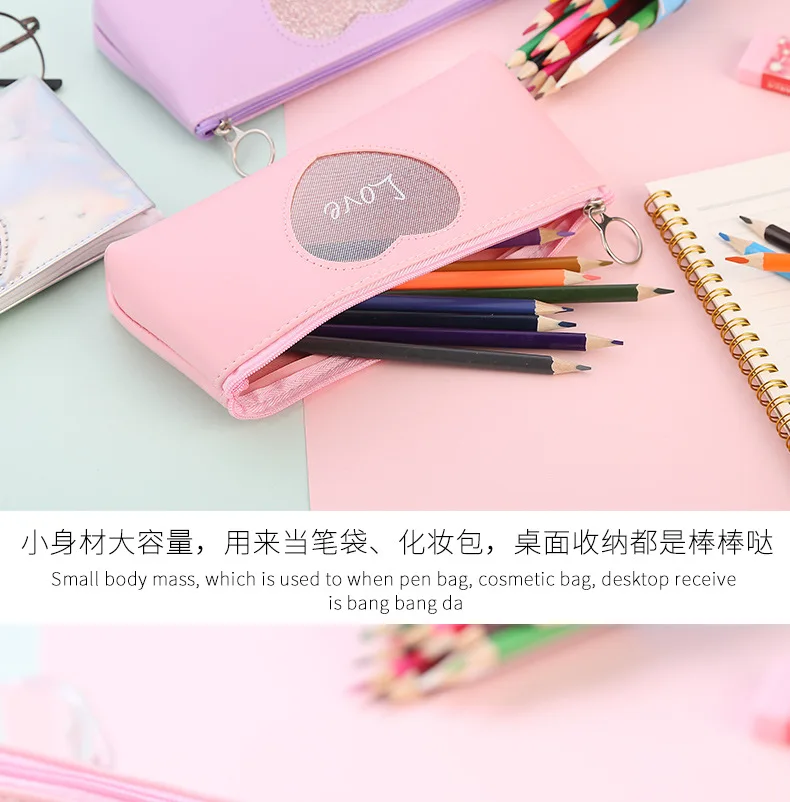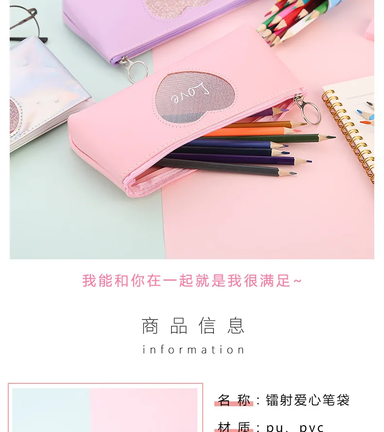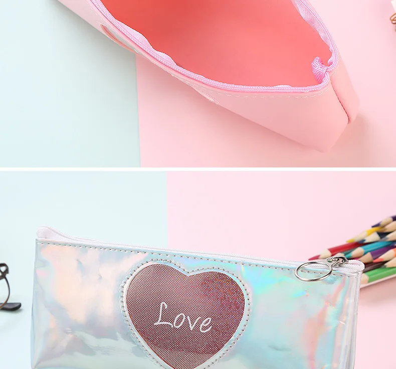 Милый кавайный пенал любовь пенал Творческий лазерная ручка чехол для девочек Подарки обратно в школу офисные канцелярские принадлежности