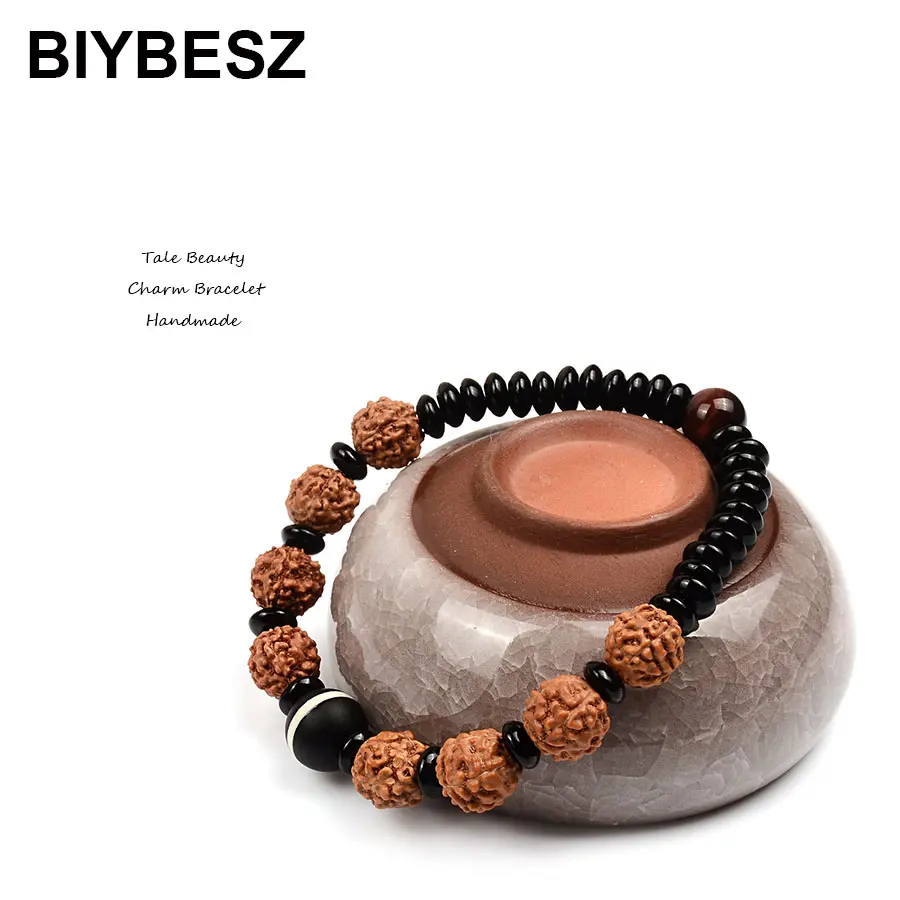 Ретро натуральный камень тигровые глаза бусы из плодов рудракши браслет шармёга эластичность веревка браслет для мужчин женские Украшения, браслеты в подарок
